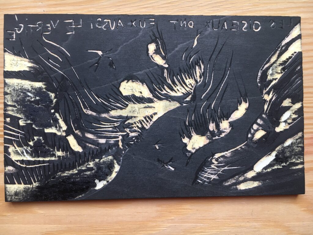 gravures réalisées au festival xylofil en juillet 2025.
